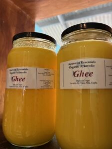 Our traditionally prepared Ghee is made from high-quality, organic butter and slow-cooked for maximum purity and potency. Rich in healthy fats, prana (life force), and Sattva (purity, clarity and harmony), ghee is a revered substance in Ayurveda for its deeply nourishing and healing properties.